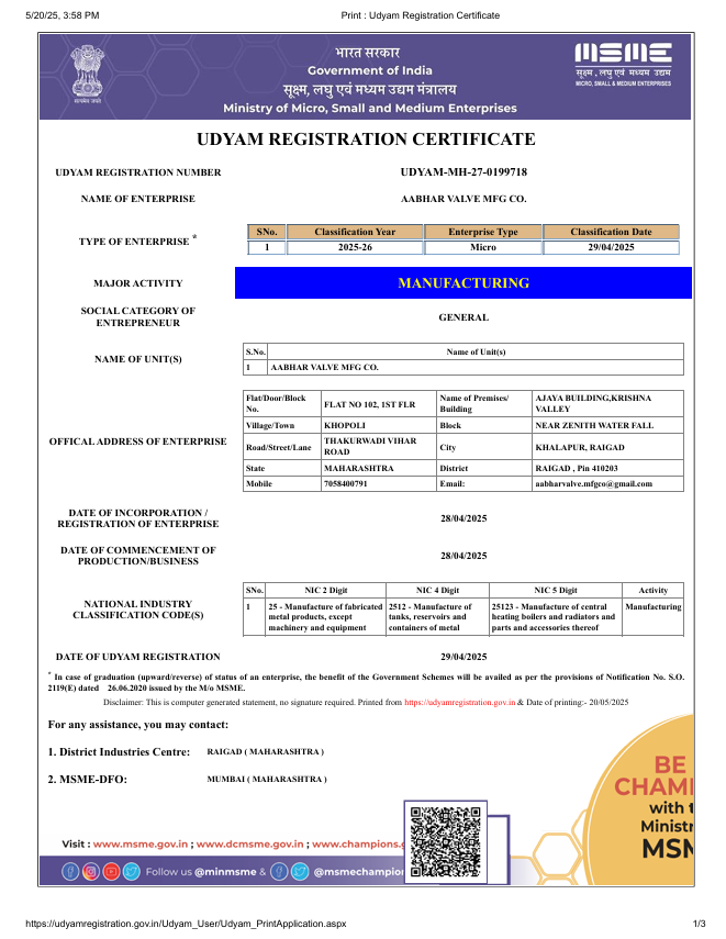 WELCOME TO YOU OUR COMPANY AABHAR VALVE MFG CO