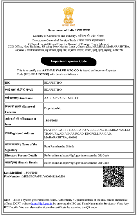 Mr. Raju R. Shinde founded aabharvalvemfgco on June 16, 2024, and Mr. Raju Shinde is the owner of the company. and excellent knowledge of lathe machine operating and automatic CNC operating experience, as well as 30 years’ experience. Our company, Industrial Valve Mfg also be an oil and gas line product manufacturer in May 2024. Aabhar Valve Mfg Co is a leading company. Production start will be from May 2025 expected production range is from 2″ inch to up to 12″ inch ball valve mfg, also nrv valve, srv valve, brass valve, flange, etc, working in our factory.
